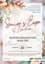 Burdekin Memorial Hall 77 - 79 Ninth Avenue, Home Hill, Burdekin, Queensland, AustraliaJoin us for the annual Seniors Expo & Luncheon on Thursday 30 October 2025, from 10:30am to 1:30pm, at the Burdekin Memorial Hall in Home Hill. The hall is wheelchair accessible and will feature a vibrant selection of stallholders offering services and resources tailored to seniors in the Burdekin community. Ricky Romeo will emcee the